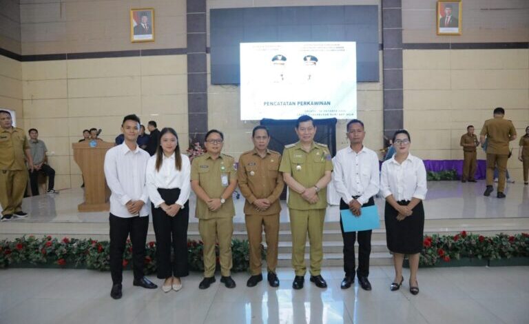 KOTAMOBAGU- Wakil Gubernur Sulawesi Utara, Victor Mailangkay,  bersama Wali Kota Kotamobagu,  Weny Gaib, menghadiri sekaligus menjadi saksi dalam kegiatan Pencatatan Perkawinan Massal yang digelar Pemerintah Provinsi Sulawesi Utara melalui Dinas Kependudukan dan Pencatatan Sipil (Disdukcapil) Provinsi Sulut, Selasa (14/10/2025).